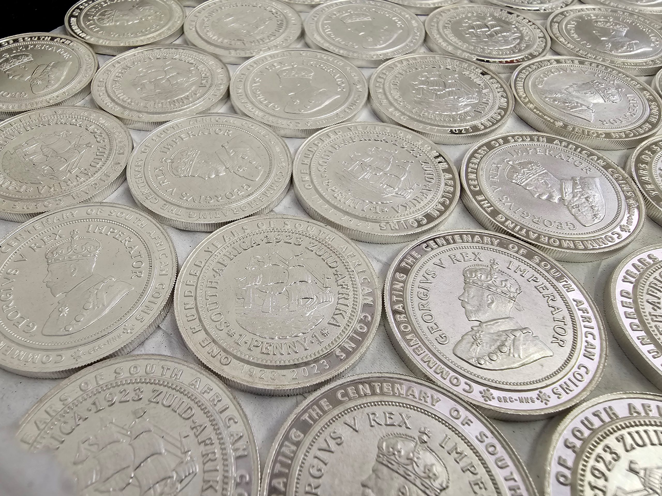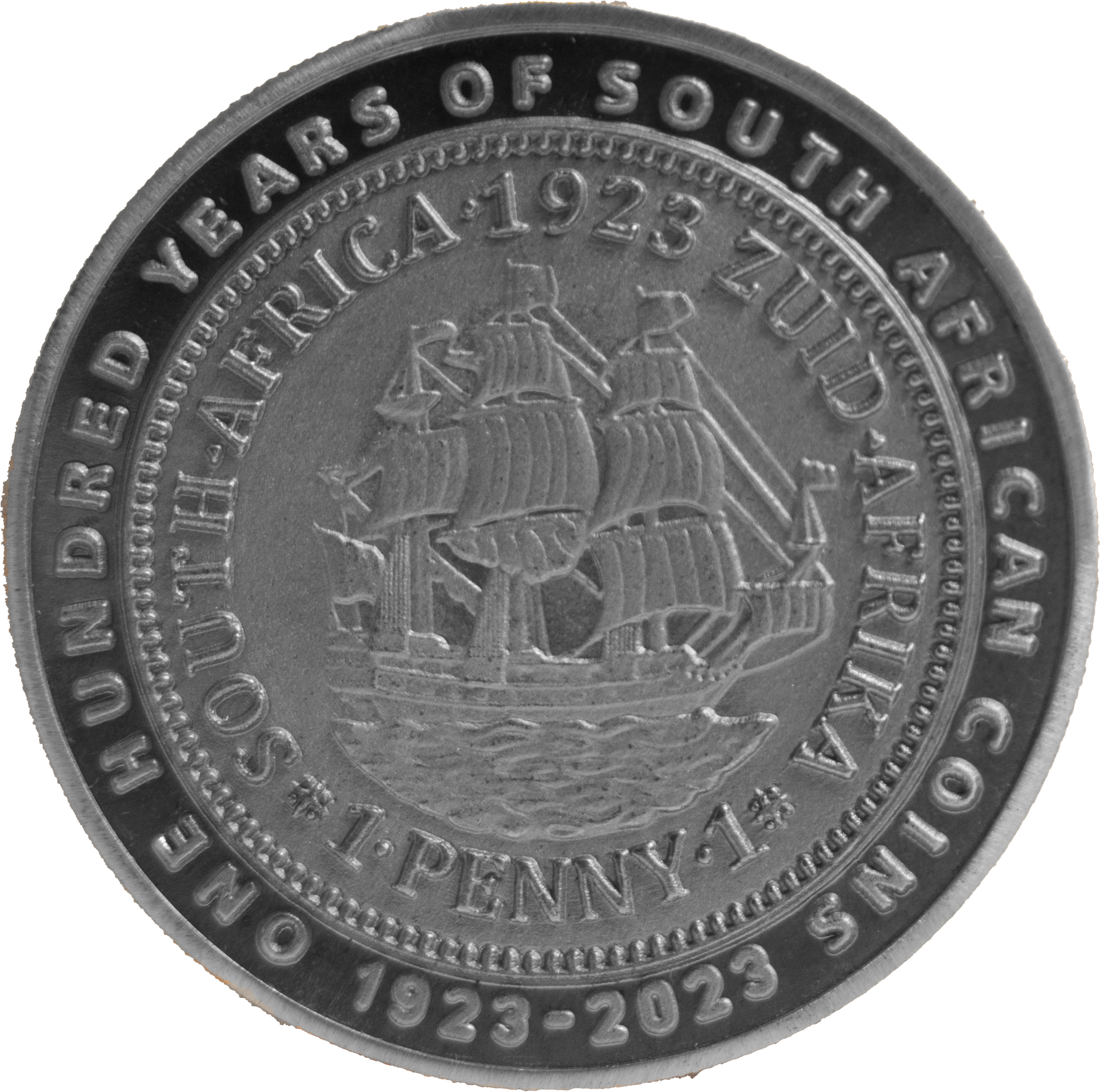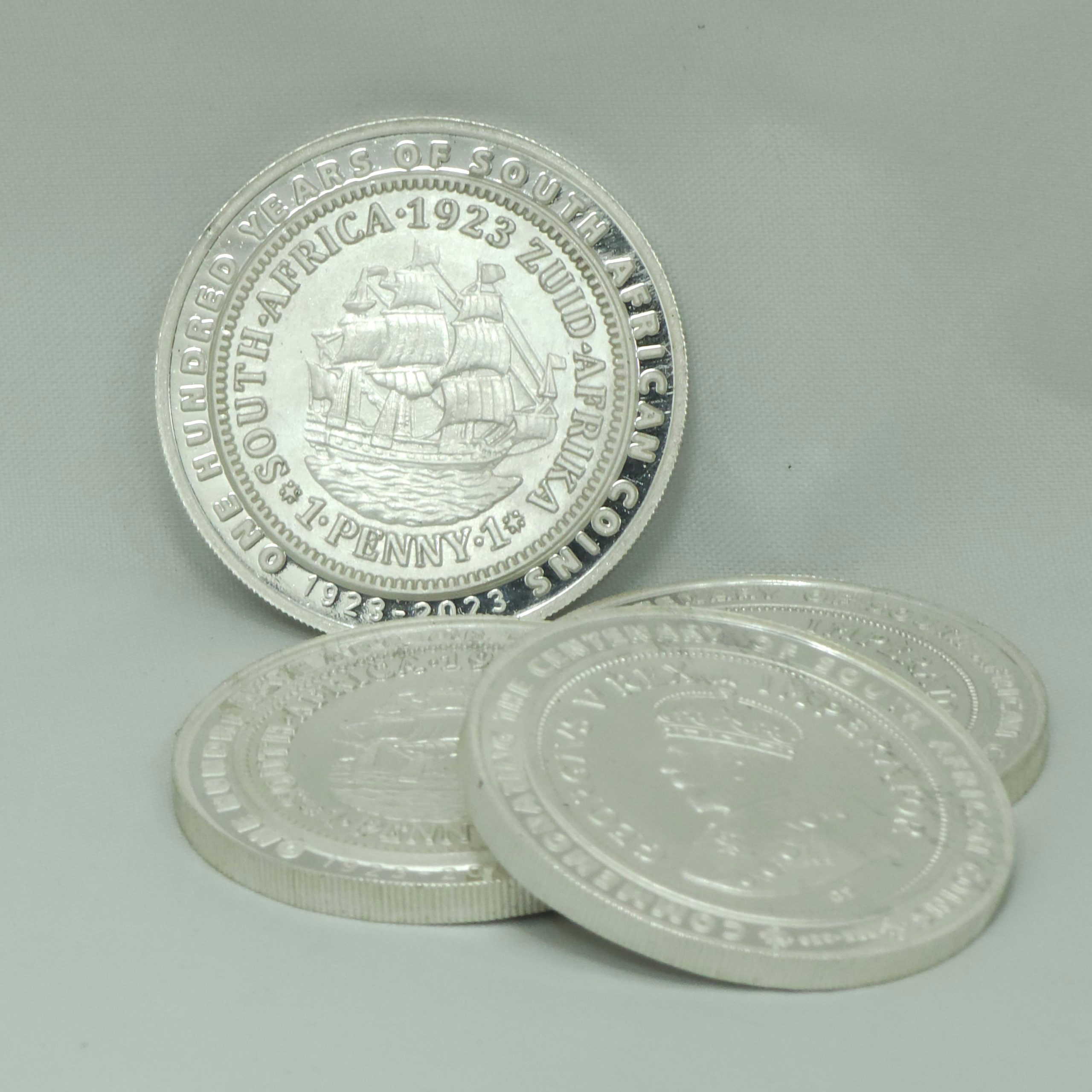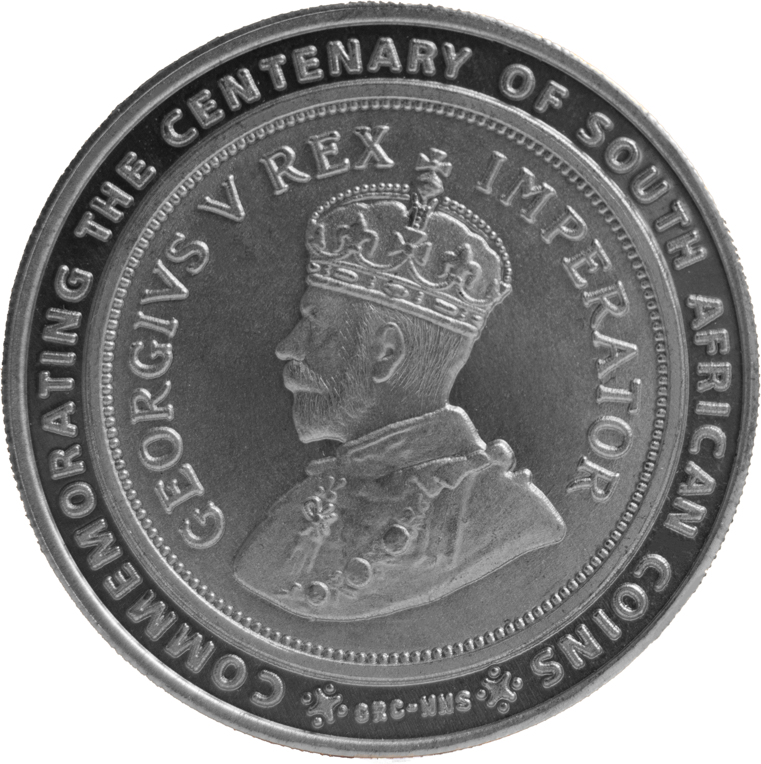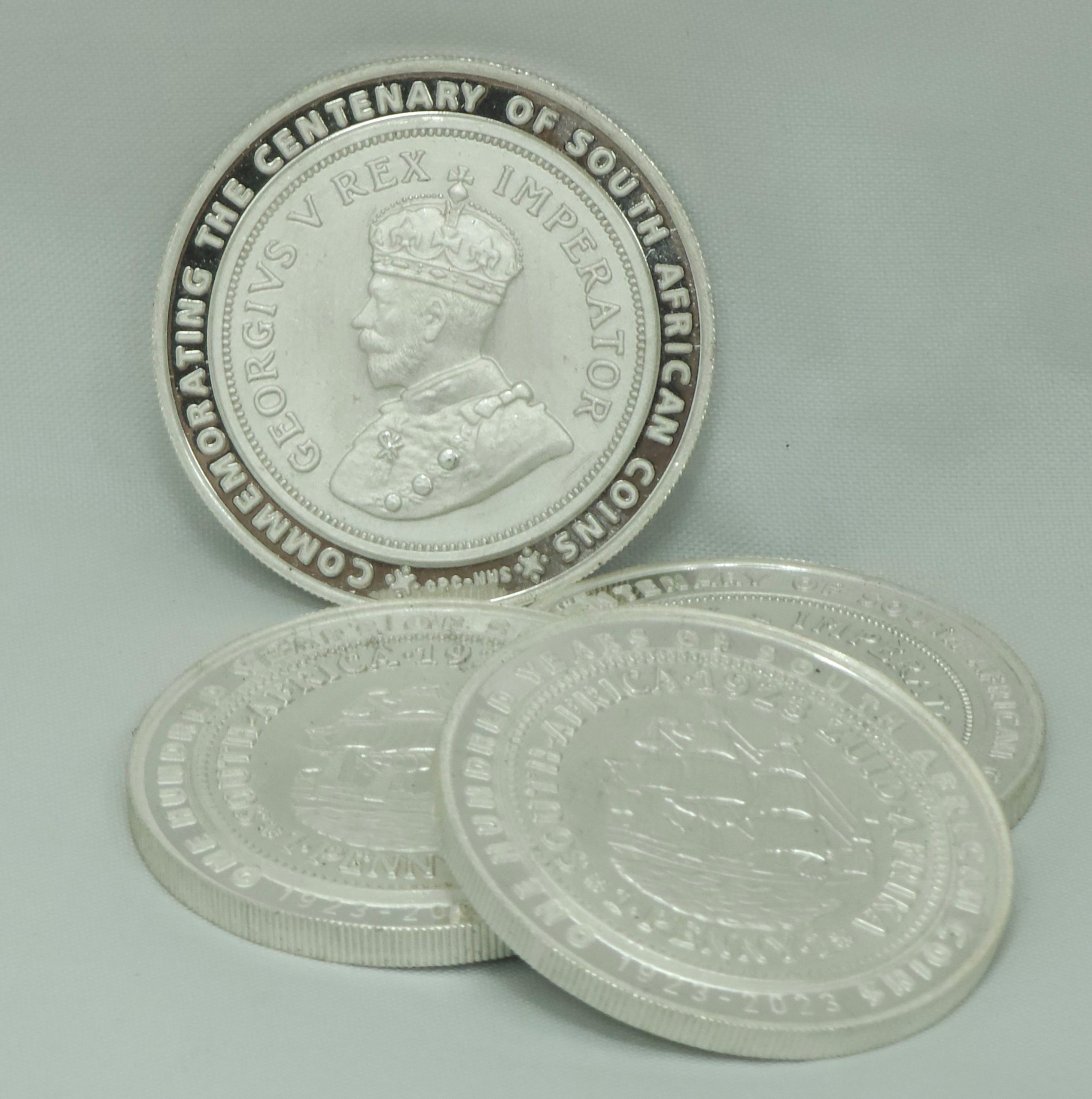 A 1oz fine silver medallion commemorating the 100 year anniversary of coins minted in South Africa