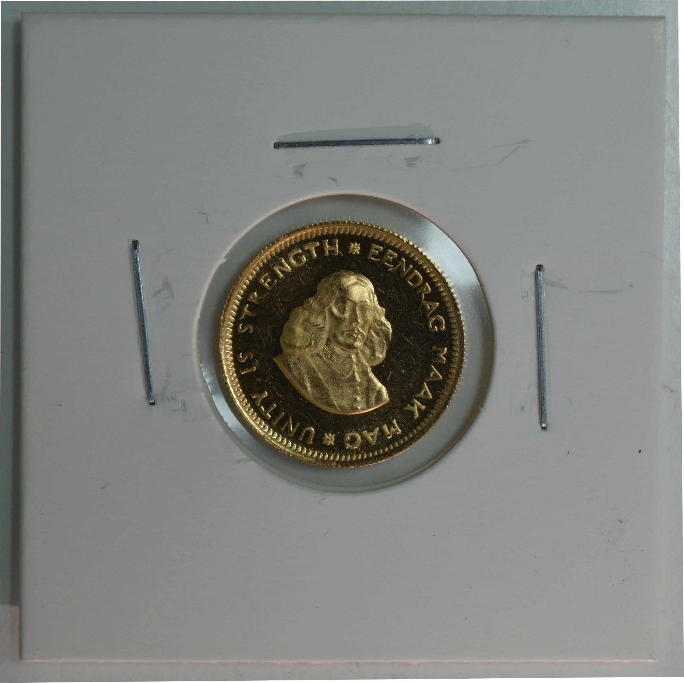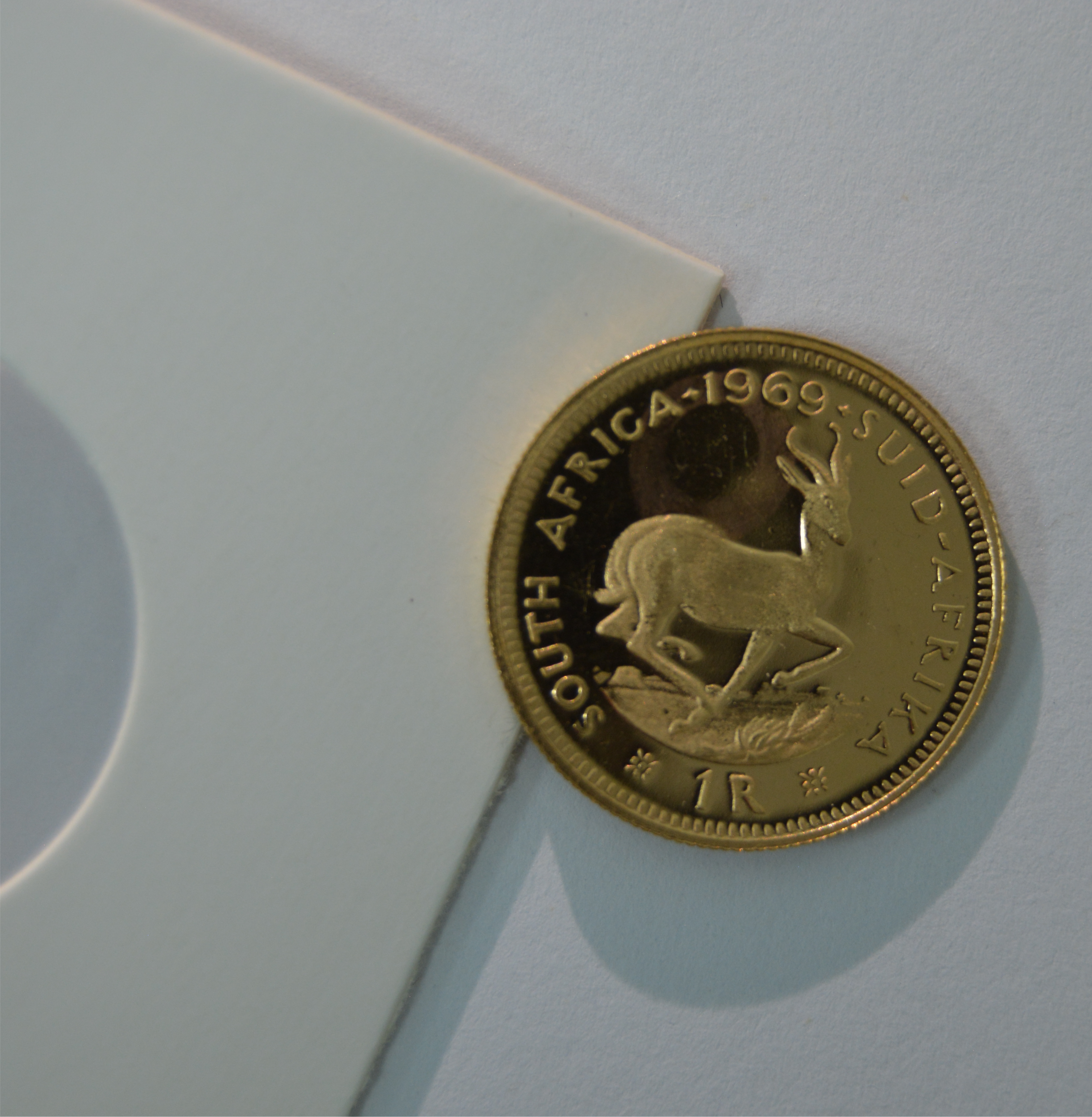 A beautiful proof like example of the 1969 issued South African R1 Gold coin. Enclosed in Mylar Flip